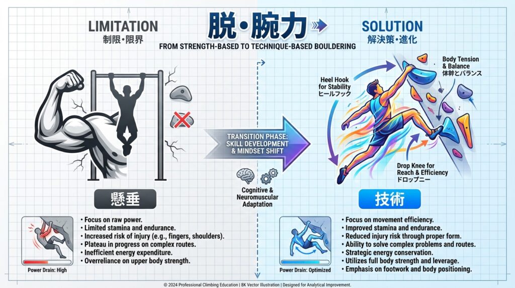 この記事を読めば、各ムーブの理屈が腑に落ち、最小限のエネルギーで登るための「身体操作システム」をインストールできます。