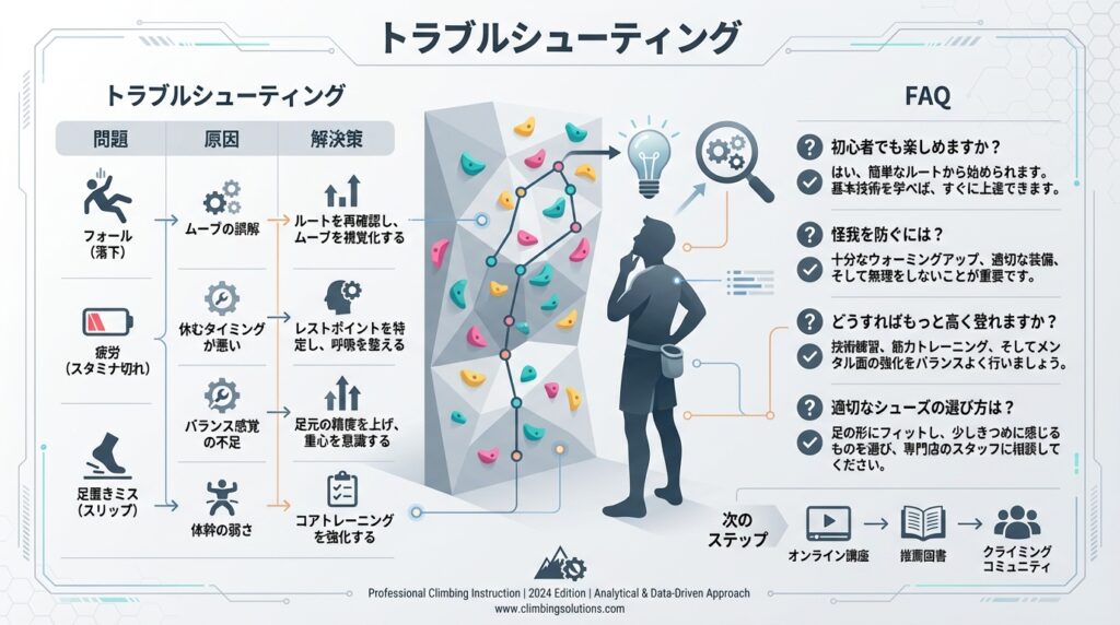 クライミングムーブ習得におけるトラブルシューティングとFAQ