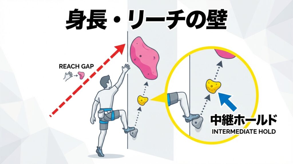 身長・リーチの壁|届かない時の中継ホールド活用法
