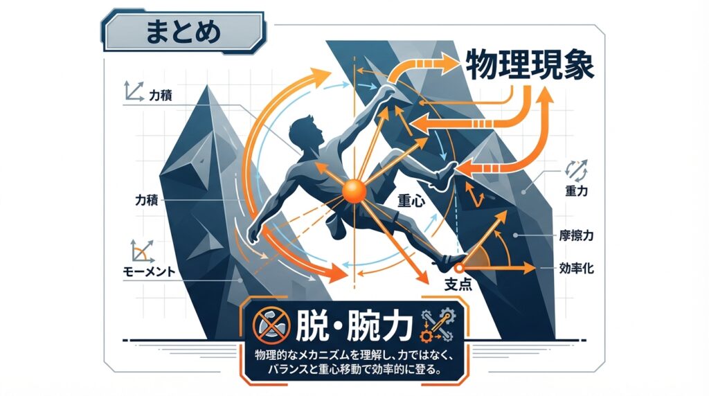 まとめ|クライミングムーブは暗記ではなく物理現象として理解する