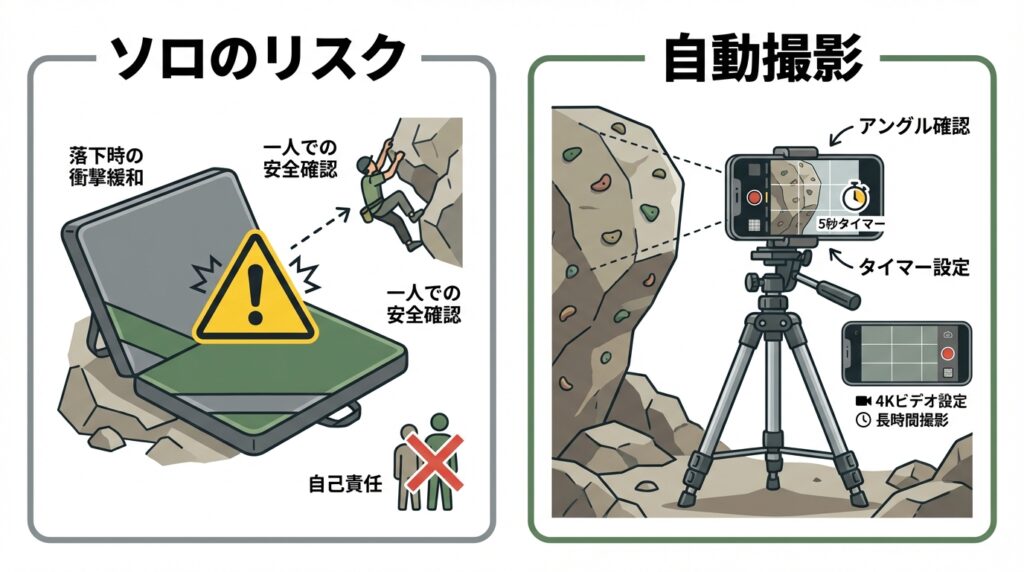 ただし、着地の安全を確保するスポッターがいないため、リスク管理の難易度は格段に高くなると認識してください。怪我をして動けなくなった場合に助けを呼べないリスクを考慮し、まずは携帯電話の電波が確実に入る人気エリアを選ぶことが鉄則です。