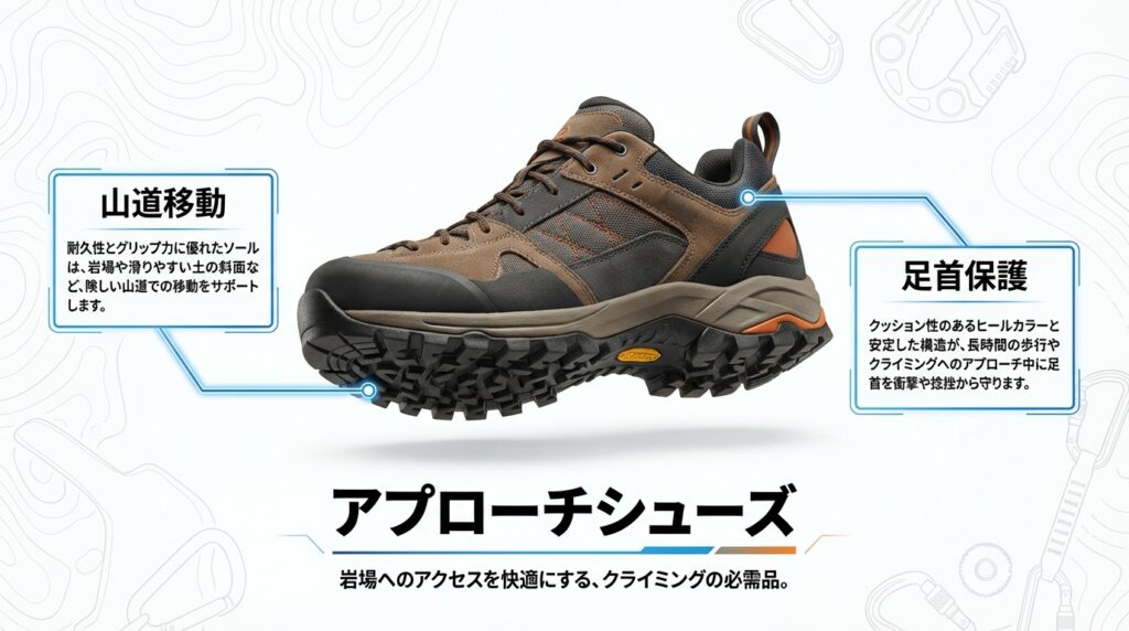 駐車場から目的の岩場へ移動する行程、通称「アプローチ」を甘く見てはいけません。多くの初心者が履き慣れたスニーカーで訪れますが、背中に数キログラムのクラッシュパッド(マット)を背負った状態での山歩きは、想像以上にバランスを崩しやすいものです。不整地での歩行性能に特化し、ソールにクライミングシューズと同等の高摩擦ゴムを採用したアプローチシューズを用意することを強く推奨します。