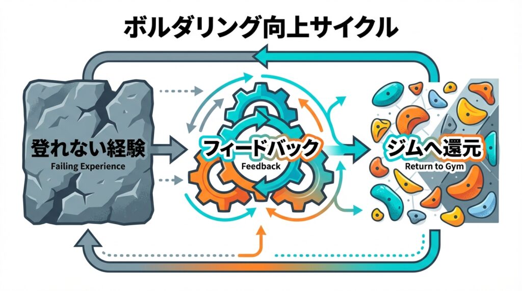 現場で得た「宿題」をインドア環境で解析し、修正してから再び岩場へ挑むプロセスを構築します。