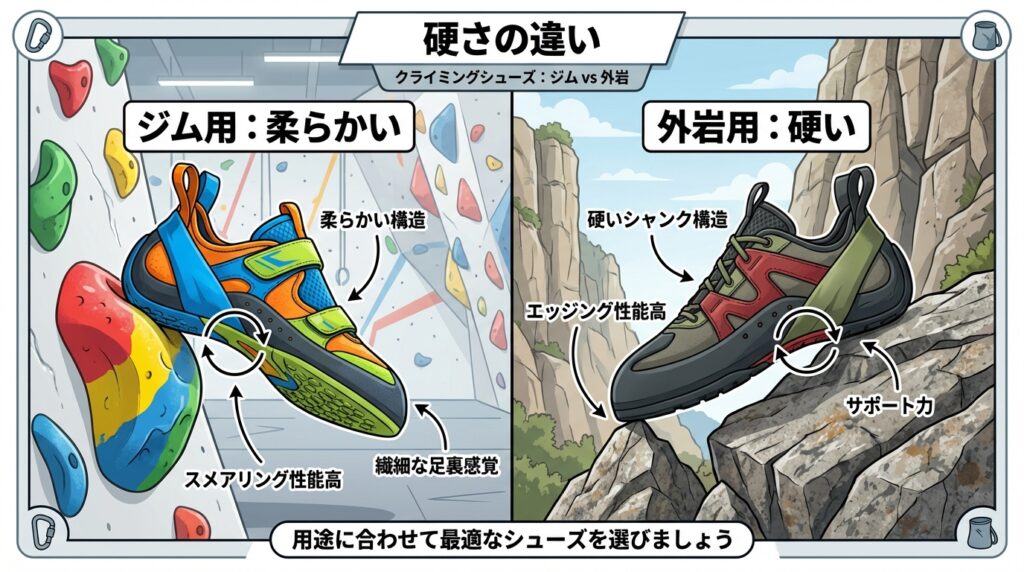 【Must】クライミングシューズ|外岩用とジム用の硬さの違い