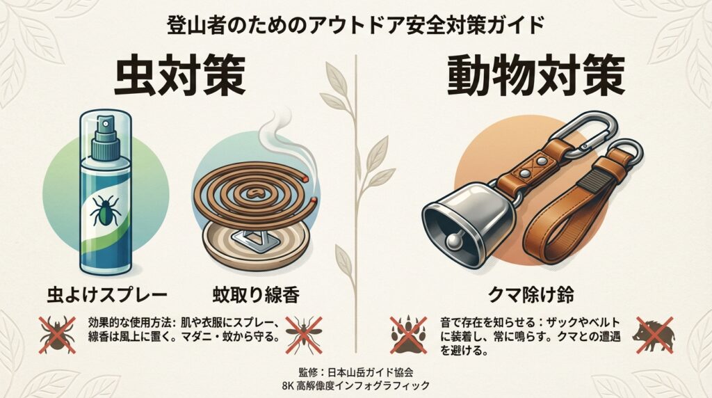 登攀中に集中力を削がれることは墜落に直結するほか、スズメバチやクマによる被害は生命に関わる重大事故になり得るからです。