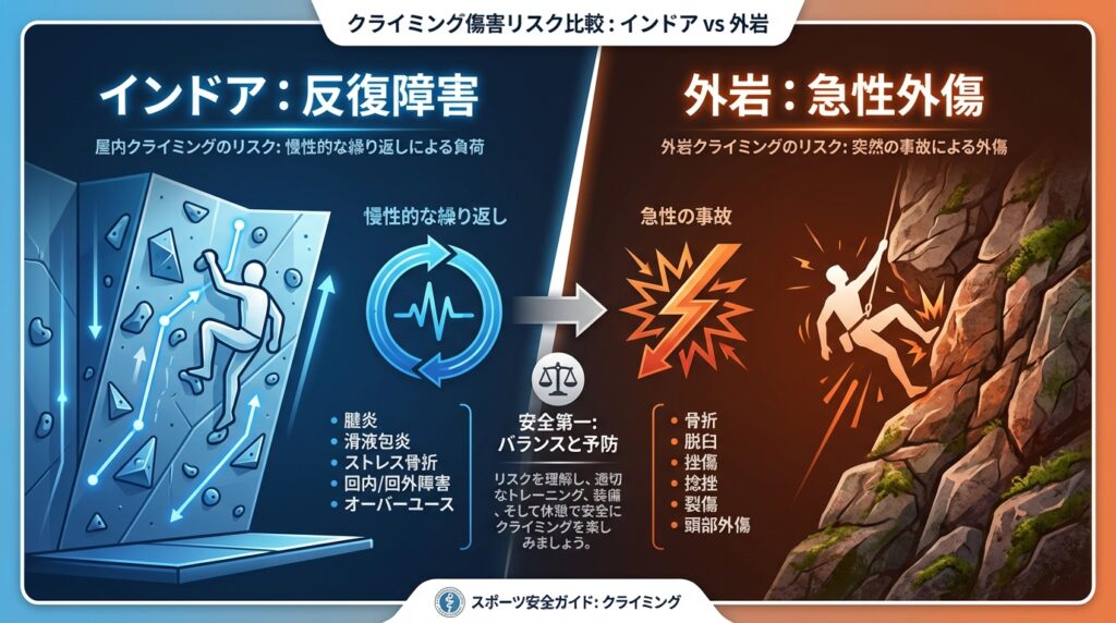 インドアの反復障害と異なる外岩特有の急性外傷リスク
