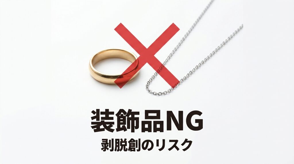 剥脱創のリスクがある指輪やネックレスなどの装飾品