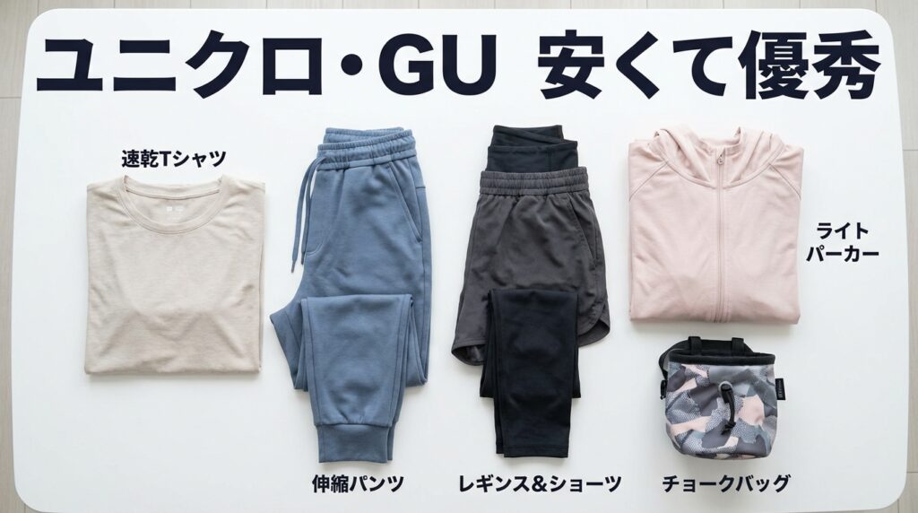 機能性が求められるボルダリングウェアですが、必ずしも高価な専門ブランドで揃える必要はありません。現在では、身近なプチプラブランドでも十分にクライミングに適した高機能なアイテムが手に入ります。
