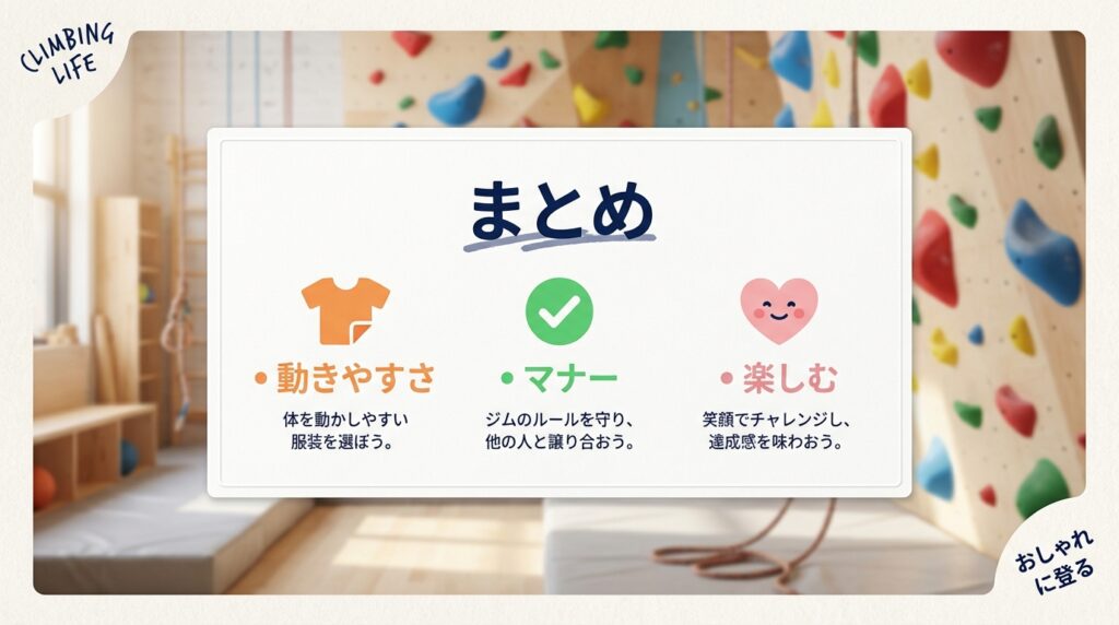まとめ|動きやすさとマナーを守ってボルダリングを楽しむ