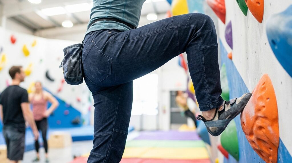 海外のギアレビューや専門家の間では、この二つの構造がないパンツは、たとえ伸縮素材であっても「クライミングには不向き」と判断される傾向が強いようです。あと数センチ足が届くかどうかは、筋力だけでなくウェアの構造によっても左右されると言えるでしょう。