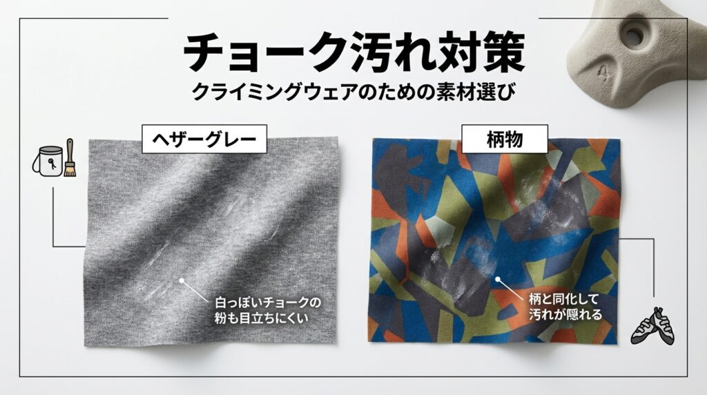 汚れを完全に防ぐことは難しいため、最初から「汚れが見えにくい」ウェアを戦略的に選ぶのが、賢いクライマーの知恵と言えます。