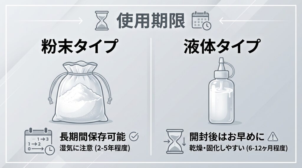 粉末タイプと液体タイプの使用期限
