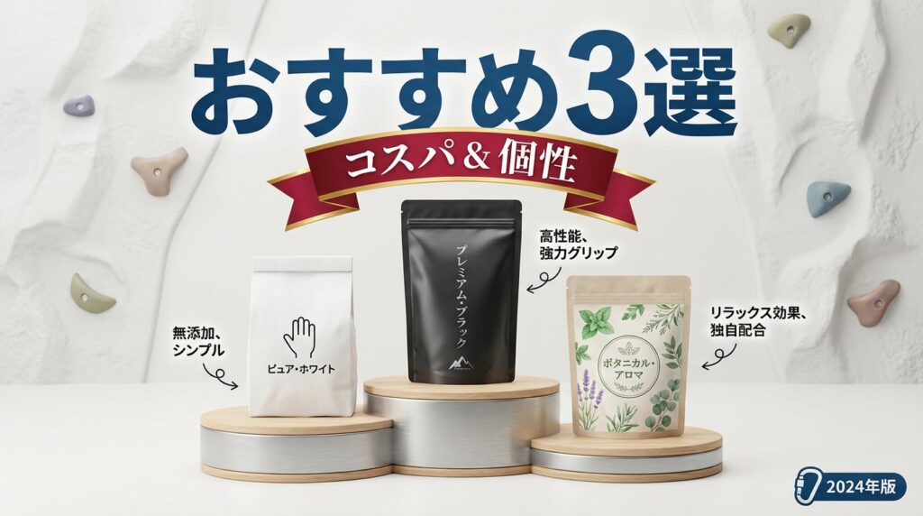 結論から言うと、迷ったら圧倒的な支持率を誇る「東京粉末 BLACK PACK」か、下地としても優秀な「GRASP リキッドチョーク」を選べば間違いありません。
