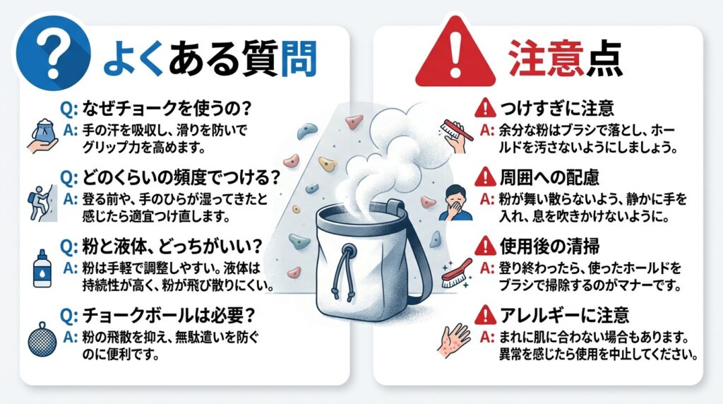 ボルダリングチョークに関するよくある質問と注意点