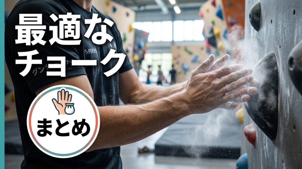 季節や体調によっても手肌のコンディションは変化するため、常に同じチョークが最適解とは限りません。夏場は吸湿性の高いものを、冬場は保湿性のあるものを使い分けるなど、その日の手の状態に合わせてギアを選択する視点を持つことが、4級の壁を突破する鍵となります。まずは自分がどちらの傾向が強いかを知り、逆効果にならない選択を心がけてください。