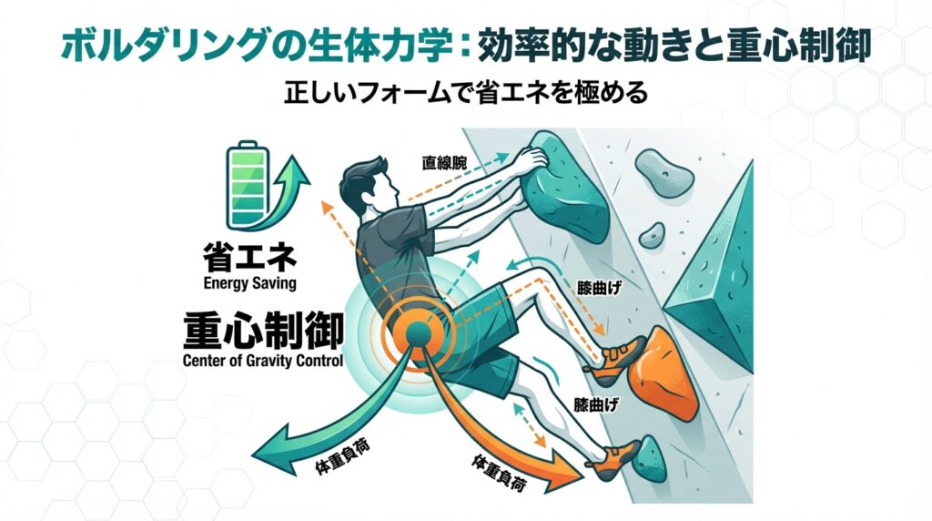 - ボルダリングにおける「省エネ」の重要性と重心の考え方