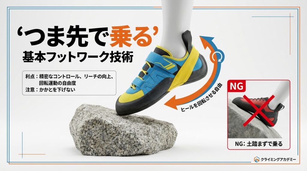 「ホールドには点(つま先)で乗る」と意識するだけで、壁の中での自由度は格段に向上するはずです。