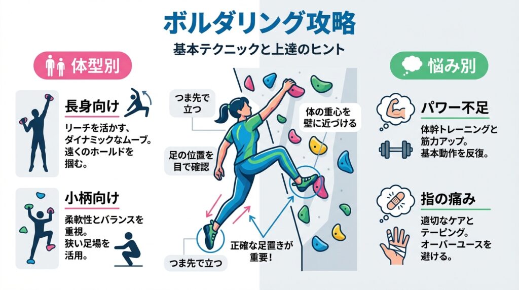 ボルダリング上達のコツ20選|5級の壁を突破する疲れない科学的登り方