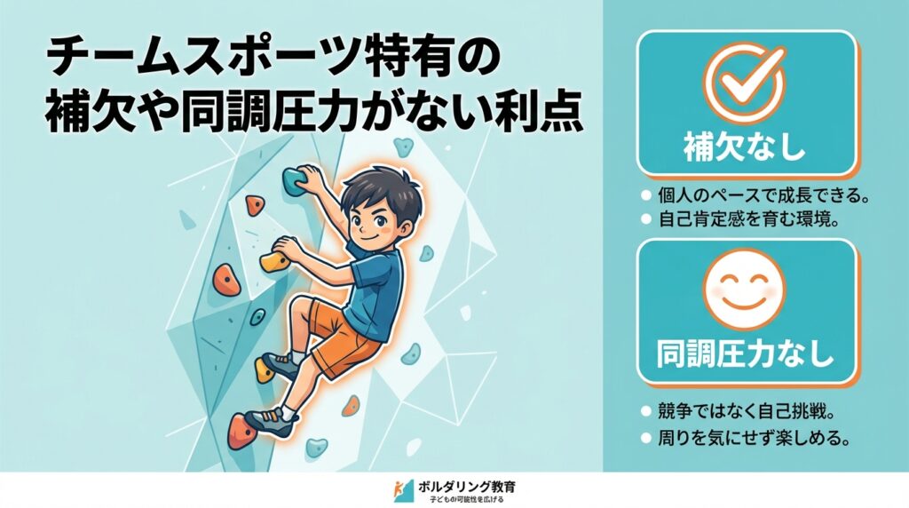 チームスポーツ特有の補欠や同調圧力がない利点