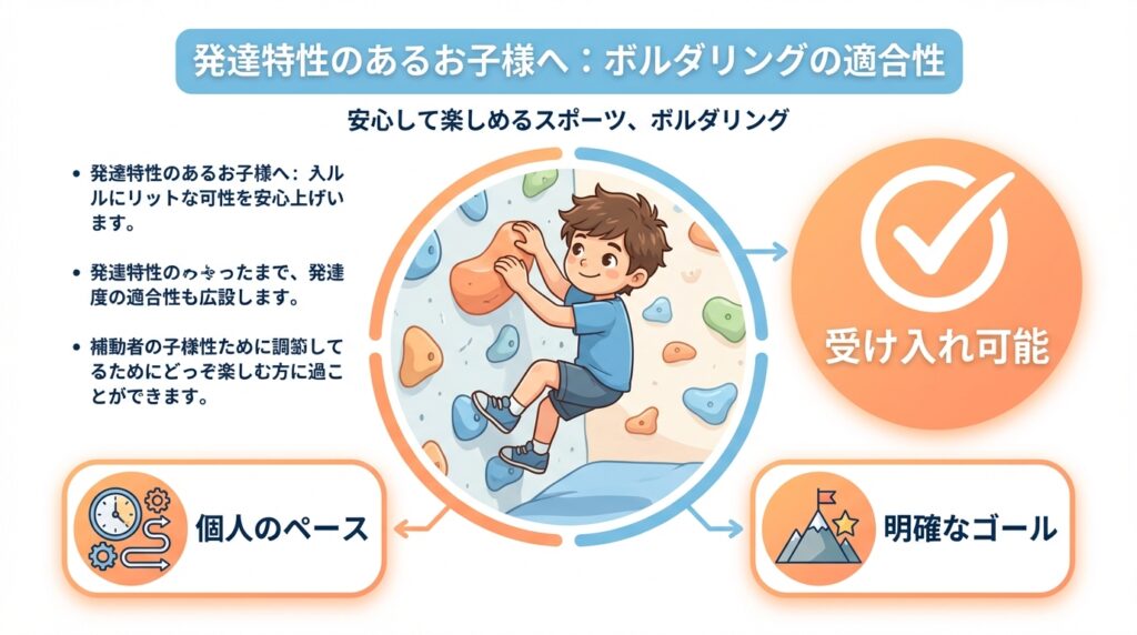 周囲の顔色を伺わず「どう登るか」だけに没頭できる環境は、集団行動や過度なプレッシャーが苦手な子供にとって、心の安全基地となるでしょう。