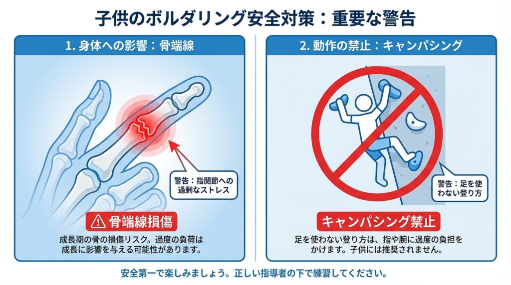 過度な負荷による骨端線損傷への警戒とキャンパシング制限