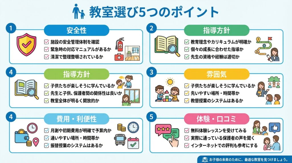 これを読めば、お子さんの性格に合った安全な教室が見つかり、親の負担も少なく通わせる方法がわかります。