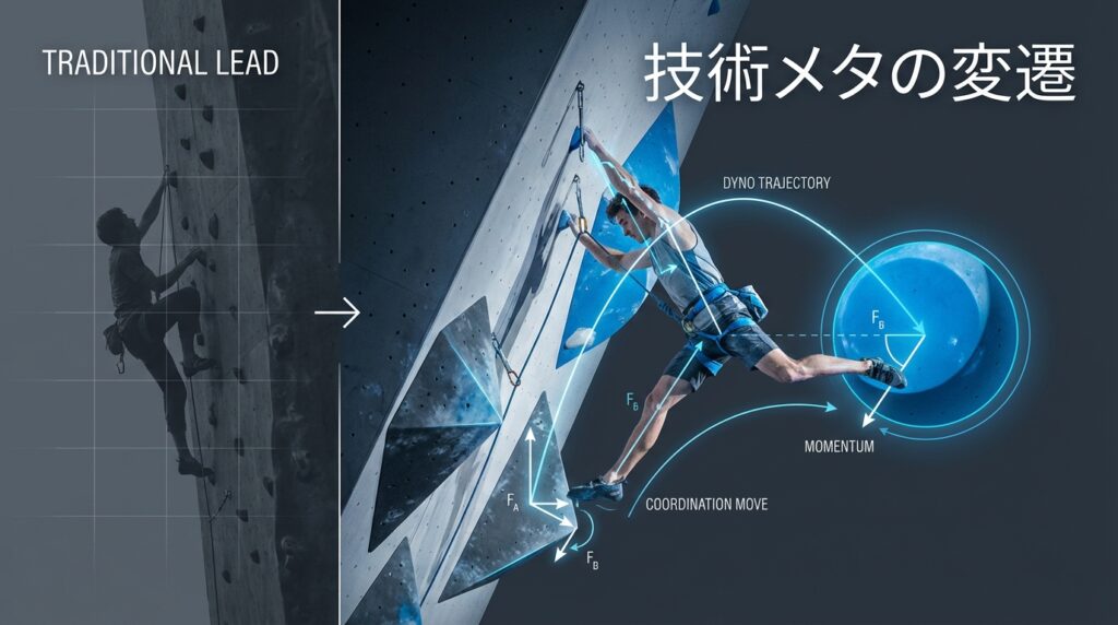 組織的な変化と並行して、壁の中で起きている「技術的な地殻変動」も見逃せません。2026年シーズンを占う上で鍵となるのは、ルートセッティングの「メタ(流行)」の変化と、それに適応した新人類たちの台頭です。